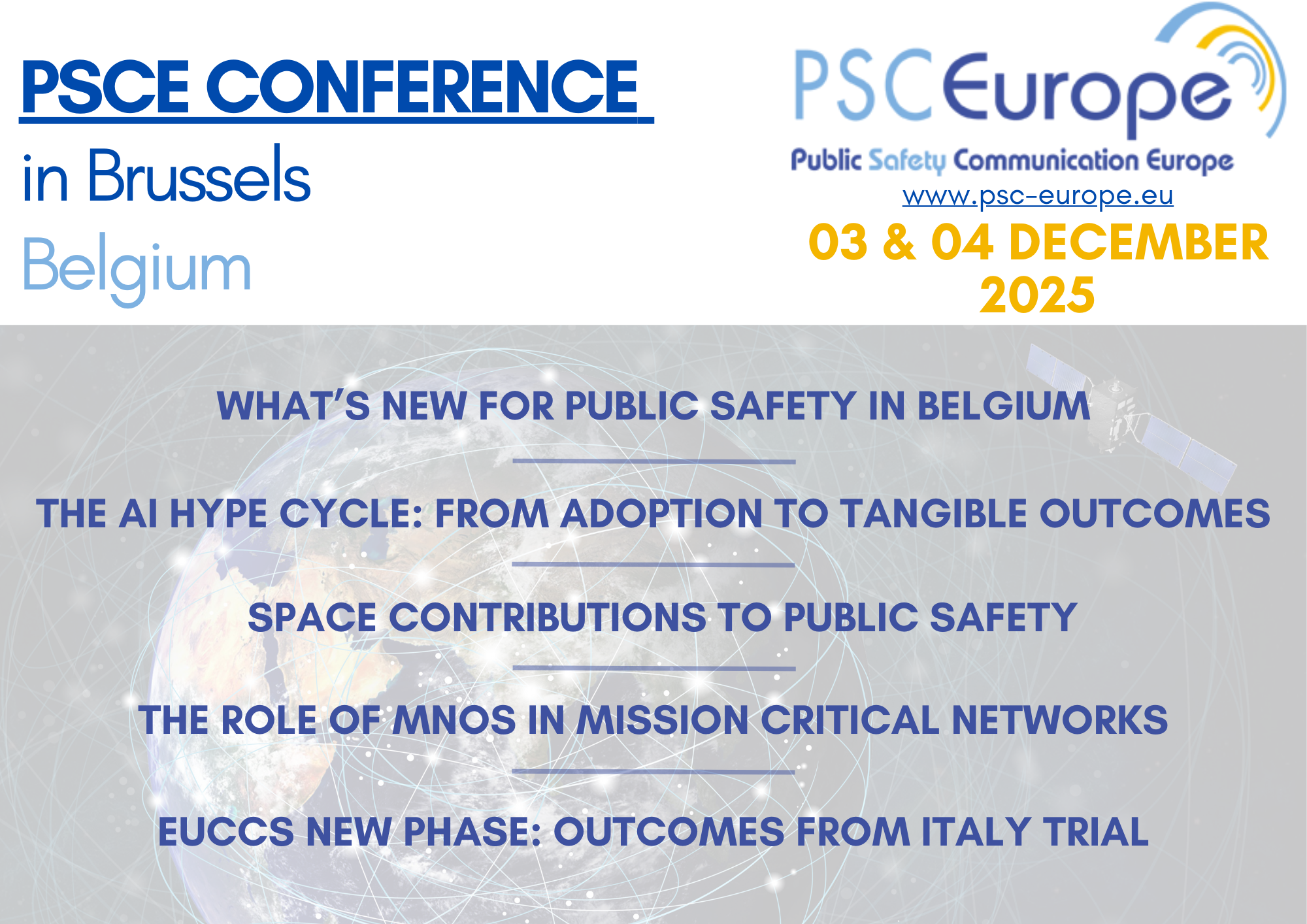 PSCE Winter Conference 2025 in Brussels – 03 & 04, December 2025 Final report from the Conference can be found here Conference report pdf Follow Us FollowFollowFollow Official conference photograph Sign Up PSCE NEWSLETTER Subscribe to the PSCE newsletter and get informed on our latest activities and get updated on the latest developments in public safety communications in Europe! Success! Email Subscribe